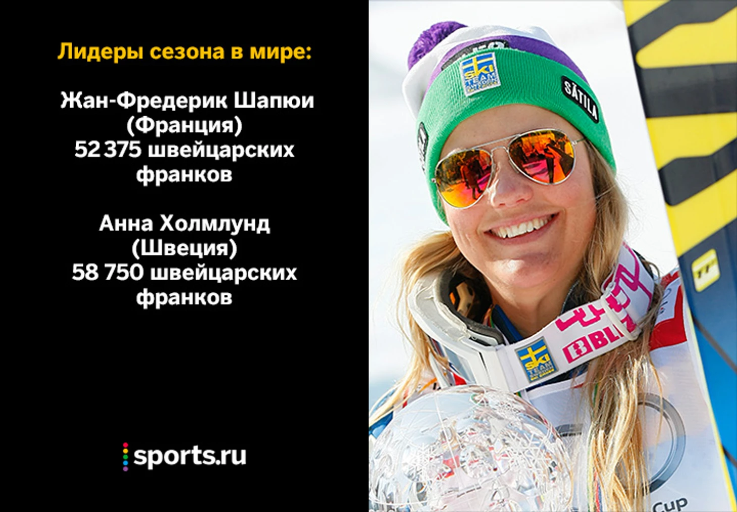 Самая коммерческая из зимних дисциплин – топ-десятка здесь за сезон почти гарантированно зарабатывает больше сотни тысяч. Прошлогодние лидеры – австрийцы Анна Феннингер и Марсель Хиршер на двоих выиграли почти миллион франков (431 и 482 тысячи соответственно), Александр Хорошилов закончил прорывной сезон с 90 тысячами. Нынешний сезон обещает прибавку – и ему, и лидерам.