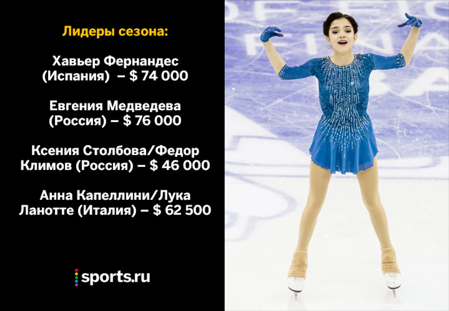 Фигуристы несправедливо ограничены двумя этапами Гран-при, поэтому одиночнику заработать больше 61 тысячи за серию не удастся (но и для этого нужно выиграть оба этапа и финал – в этом году это удалось только канадскому танцевальному дуэту). На помощь приходят достойные бонусы за чемпионаты Европы и мира – не уровень горнолыжников, конечно, но точно больше, чем у других спортсменов на коньках (хоккеисты, конечно, не в счет).