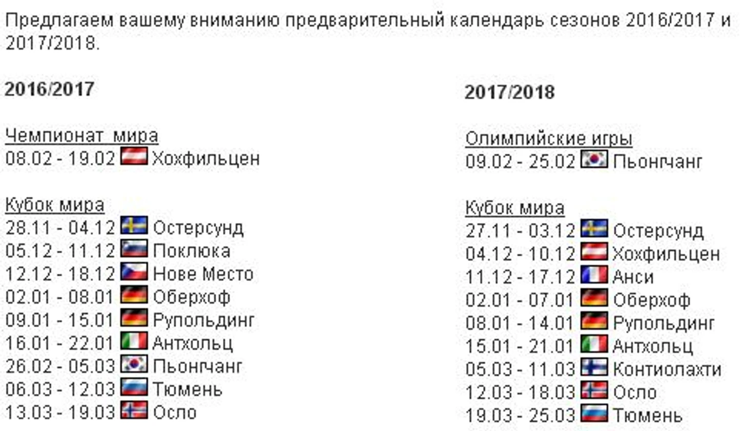 Напоследок, буквально только что стало известно предварительное расписание следующих двух сезонов: