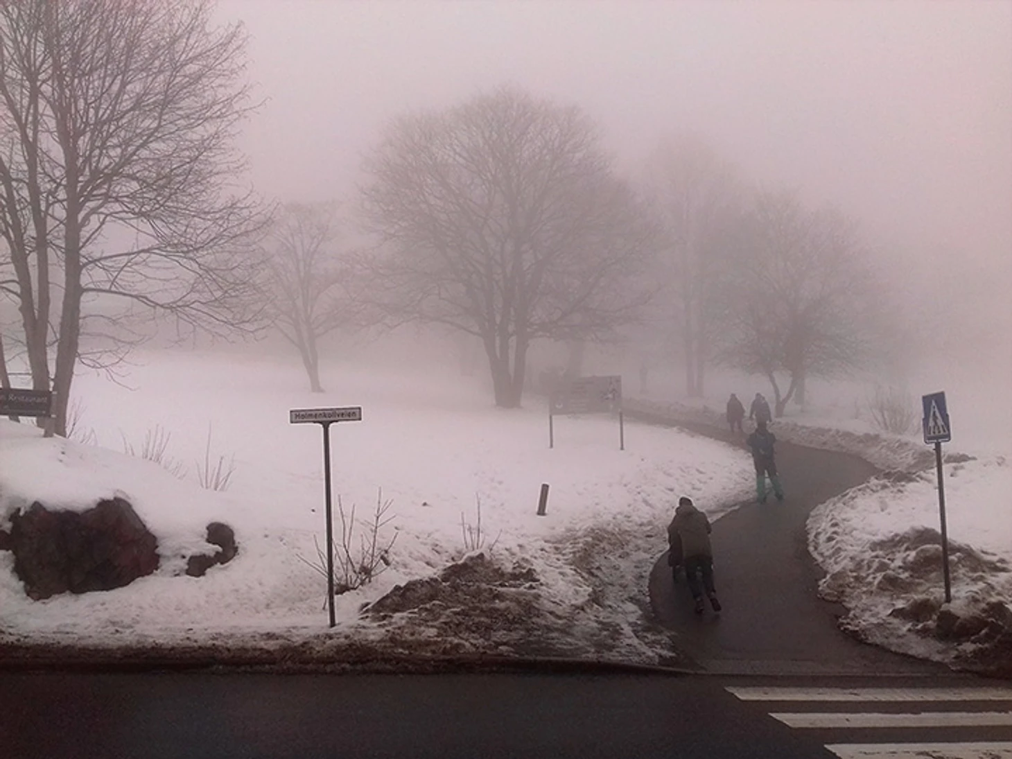 В центре Осло его нет. Пасмурно, промозгло, слякотно – но видимость нормальная. 25 минут на поезде, подъем на три-четыре сотни метров – и попадаешь в биатлонный Сайлент Хилл.