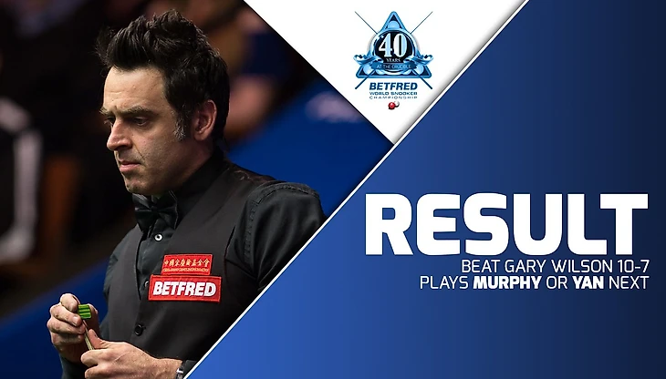 Вторую сессию 5-кратный чемпион мира провел более собранно, чем первую, и это дало результат. Ракета повел в счете 9:5 и без особых нервов довел дело до победы. Ронни сделал еще один сенчури – 123-й на чемпионатах мира и 870-й в карьере. Уилсон ответил двумя сотенными сериями. О’Салливан задействовал ровно столько сил, чтобы выйти в следующий раунд, однако пока далек от своей лучшей игры. Бывший таксист же может считать свой дебют в «Крусибле» вполне усешным, все-таки выиграть 7 фреймов у такого соперника дорогого стоит.