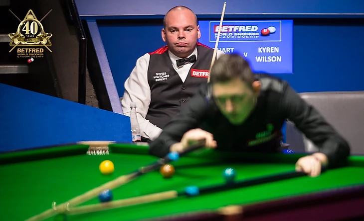 Кайрен вел в счете 5:0, однако следующий четыре партии взял Стюарт – 4:5. Уилсон на протяжении всего матча сохранял минимальное преимущество в счете и удержал его до самого конца. Примечательно, что в 22-м фрейме Бингхэм сделал реальный заход на максимум, однако ошибся на 11-м красном. В общей сложности за матч 40-летний англичанин сделал сенчури (причем в 137 очков – пока лучшая серия на турнире) и 7 брейков за 50, а на счету 25-летнего англичанина сотенная серия и 6 полусотен. Таким образом, Кайрен Уилсон во второй раз подряд и во второй раз в карьере выходит в четвертьфинал, где сыграет с Алленом или Хиггинсом.