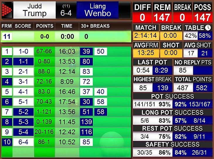 При счете 1:1 казалось, что матч будет равным. Но потом Веньбо заметно просел, а Джадд продолжал демонстрировать хорошую игру. Вот счет уже был 5:1 и стало понятно, что победитель тут уже известнен. Веньбо сохранил лицо, выиграв еще три фрейма, но это надо было делать раньше. А так Джадд закончил матч с показателем результативности 93%, 5/6 в дальних и 30/35 успешных отыгрышей.