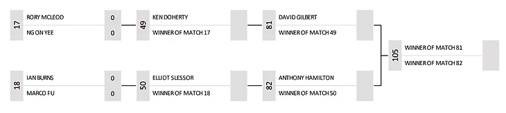 Интриги в части сетки с Дэвидом Гилбертом мало: среди потенциальных соперников англичанина всего один игрок топ-50 – Энтони Хэмилтон. Учитывая уровень, на котором умеет играть Гилберт, проблемы при такой жеребьёвке он может создать себе только сам, не выдержав психологически. Если Дэвид покажет собранный снукер, как он делал неоднократно в начале сезона, его можно ждать в Крусибле. В этой ветке также будет и Марко Фу, но после двухлетнего отсутствия соревновательной практики ждать многого от гонконгца, пожалуй, не стоит.