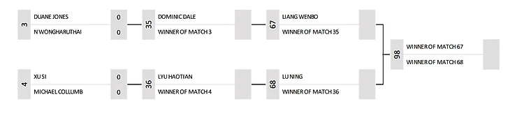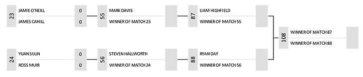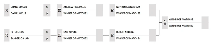 Такой вот побочный эффект Gibraltar Open – после неожиданной победы Роберта Милкинса англичанин теперь во главе целой ветки квалификации. Но здесь Милкинсу придётся играть заметно более длинные матчи, чем в Гибралтаре, и в удачное выступление в Шеффилде верится с трудом. Из этой части сектора должен выходить Ноппон Саенгхам – снукерист нестабильный, но способный пройти Эндрю Хиггинсона и того же Милкинса. Цао Юйпен, ударно начинавший сезон, к концу снукерного года совсем завял, и его проход в основную сетку кажется чудом.