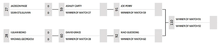 Джо Перри, как и Фань Чжэни, кажется, после победы на рейтинговом турнире вернулся к неубедительной игре. Но для попадания в Крусибл Перри скорее всего не потребуется максимум усилий. Из серьёзных соперников на его пути только Сяо Годун, который в этом сезоне не один раз проигрывал снукеристам из глубины рейтинга. Также в этой части сетки Юлиан Бойко сыграет с Майклом Джорджиу. Шансов у Юлиана при такой жеребьёвке объективно мало, и, вероятно, совсем скоро придётся желать ему побед в Q School.