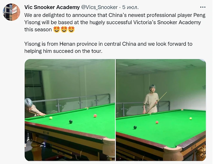 Пен Йисун (20 лет) получил путёвку в мэйн-тур благодаря внутренним соревнованиям в Китае. Вот три захватывающих факта о Йисуне: он будет базироваться в нашумевшей Victoria Snooker Academy, начнёт сезон 19 июля в группе с Джаддом Трампом на Championship League и, судя по всему, станет обладателем самой яркой причёски в мэйн-туре.