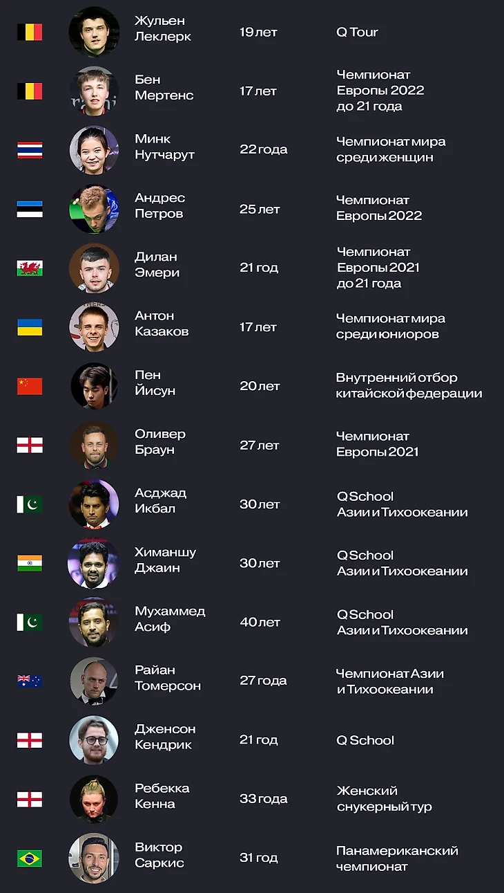Четыре чемпиона Европы, юниоры и снукеристки: знакомимся с 15 новичками мэйн-тура