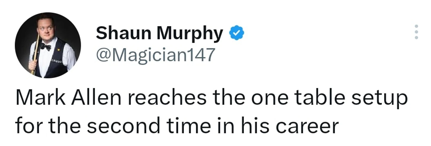 "Марк Аллен выходит в стадию одного стола на чемпионате мира во второй раз в карьере"
