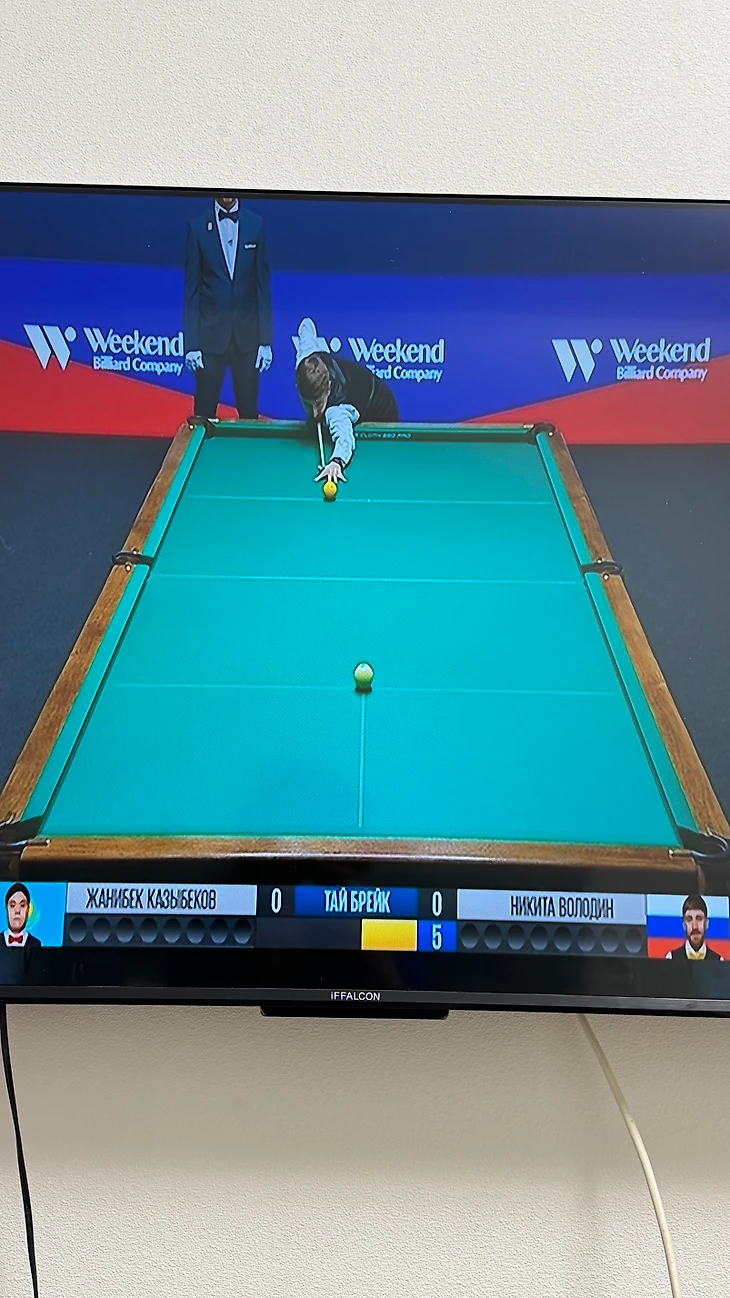 Я наткнулся на матч случайно. Не планировал смотреть его(в моем доме телевизор в принципе включается пару раз по вечерам, если брать в расчет среднестатистическую неделю), но я решил дать шанс бильярду. Я до этого уже пару раз видел бильярд Никиты Володина, знаю Иосифа Абрамова и Максима Зверева. Бильярд меня расслабляет, я получаю эстетическое удовольствие от просмотра игры. У меня даже была попытка согласовать интервью и тренировку с Никитой Володиным(мы оба петербуржцы), но не срослось по причинам, известным стороне Никиты. В подобном стиле я делал материал с тренировки с боулером Полиной Шутовой(за которой буду следить в декабре в Гранд-финале Континентальной Лиги Боулинга, под фамилией Кудрина выступит Полина, вышла замуж). Интересно, как мир спорта широк. Но сейчас о бильярде, главный герой заметки Жанибек. Заметка о бильярде в моем многогранном спортивном и социальном блоге впервые.