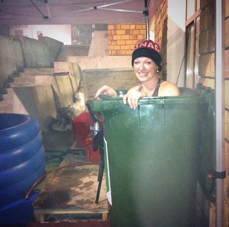 Канадская бобслеистка Хизер Мойс приняла ванну в баке для мусора, находясь в горной олимпийской деревне на Играх в Сочи.