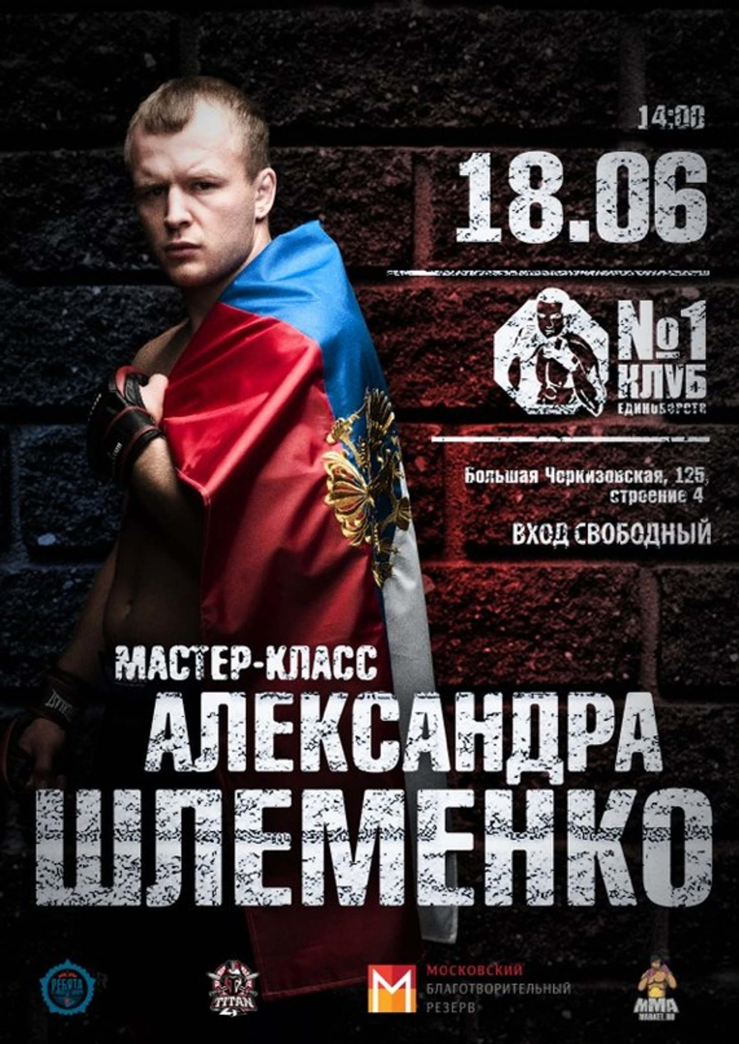 Знаменитый российский боец смешанного стиля Александр Шлеменко проведет 18 июня в «Клубе единоборств №1» (Москва, ул. Большая Черкизовская д. 125 стр.4) бесплатный мастер-класс, в ходе которого расскажет о своей системе тренировок. Мероприятие рассчитано на детей, которые занимаются не только единоборствами, но и другими видами спорта. После мастер-класса пройдет фото- и автограф сессия со спортсменом. Начало в 14.00.