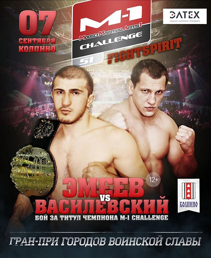 Бой за звание чемпиона M-1 Challenge в среднем весе: Вячеслав Василевский (Fightspirit), 23-2 – Рамазан Эмеев (Горец), 11-2