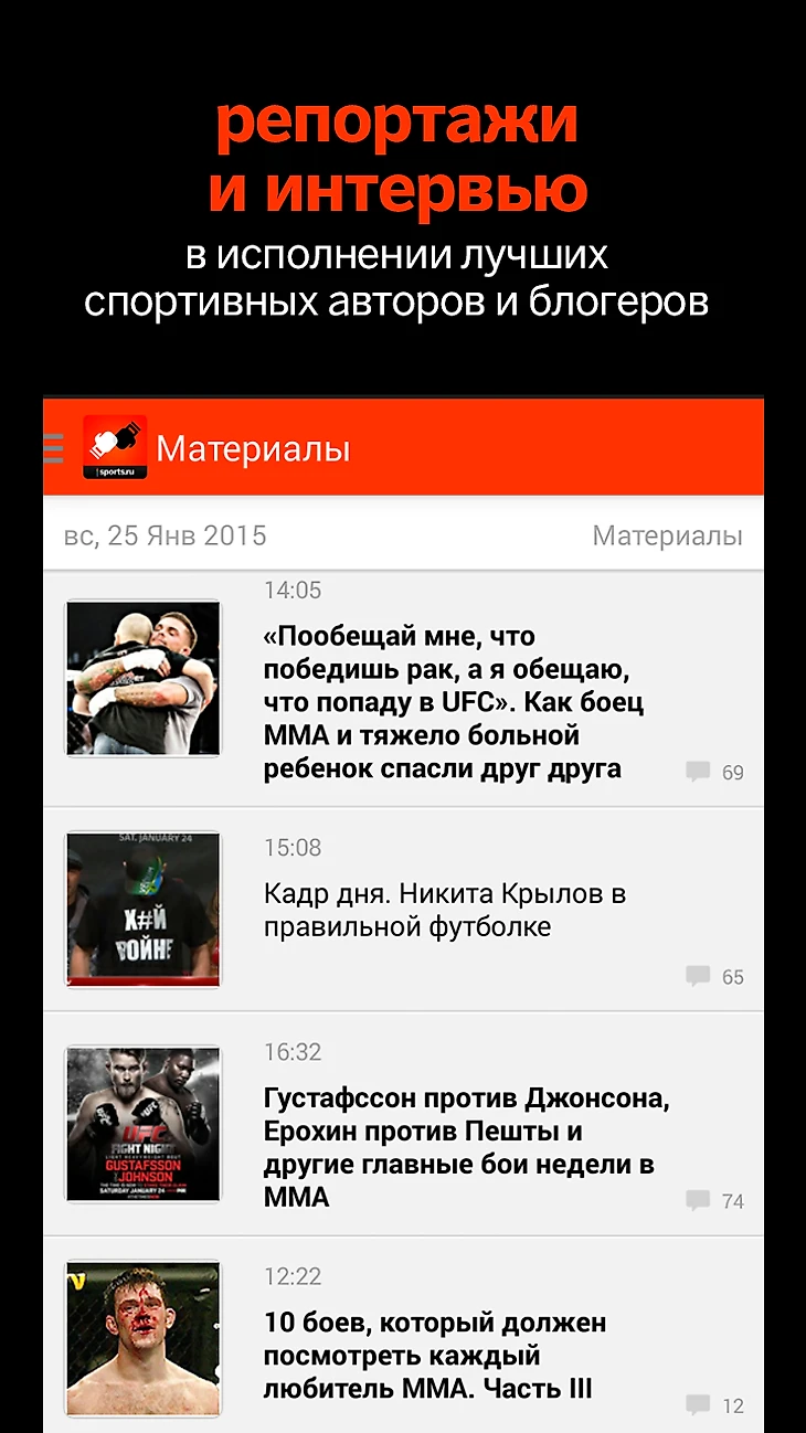 Тексты лучших спортивных журналистов и интервью со спортсменами и специалистами;