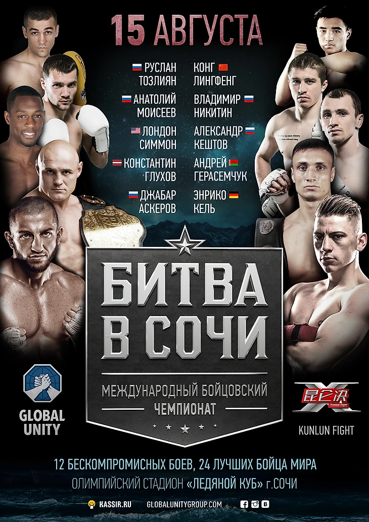 15 августа на олимпийской арене «Ледяной куб» состоится международный бойцовский чемпионат «Битва в Сочи».