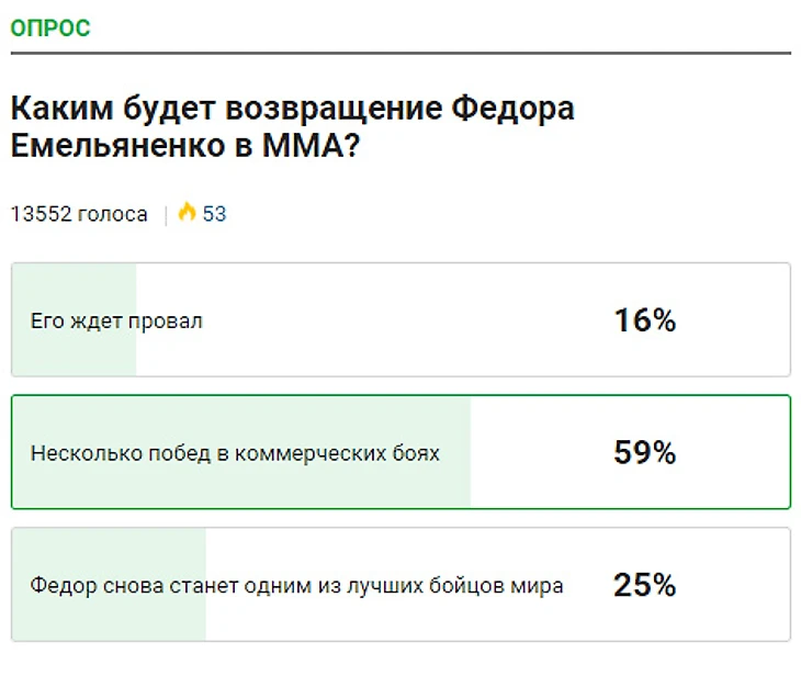 Итоги опроса «Каким будет возвращение Федора Емельяненко в ММА?»