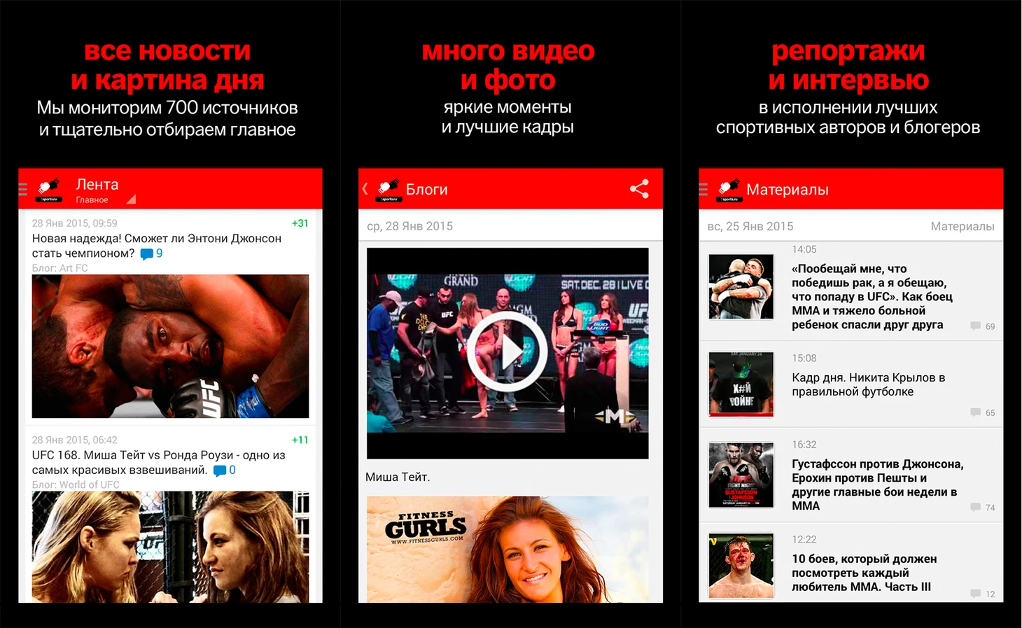 МакГрегор одержал очередную победу – все подробности боя и все, что его окружало в главном бойцовском приложении на русском языке! В текущей версии приложения вы найдете: – Новости, анонсы и статьи о мире бокса и смешанных единоборств;– Видео, Gif и фото боев;– Тексты лучших спортивных журналистов и интервью со спортсменами и специалистами;– Блоги и материалы пользователей Sports.ru;– Форумы и чаты для общения с другими болельщиками и другие возможности. Скачать для iOS Скачать для Android Скачать для iOS Скачать для Android