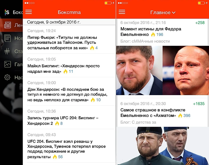 Новости и материалы о всех главных событиях бокса и единоборств: видео, высказывания оппонентов, аналитика от журналистов и блогеров. Кроме того, следите за всеми новостями, расписанием и топовыми боями планеты с лучшим приложением «Бокс, UFC, MMA+» от Sports.ru