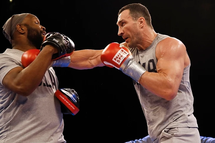 Энтони Джошуа (18-0, 18 нокаутов) и Владимир Кличко (64-4, 53 нокаутов) провели открытую тренировку перед своим субботним поединком. На кону боя будет стоять принадлежащий Джошуа пояс IBF в тяжелом весе и вакантный титул WBA.
