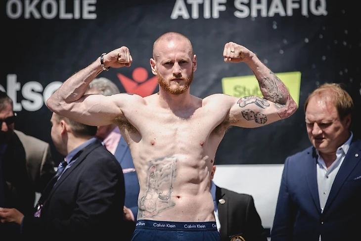 Келл Брук, Эррол Спенс, Федор Чудинов и Джордж Гроувс на взвешивании в Великобритании