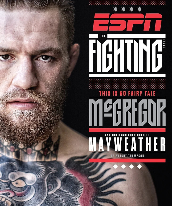 Конору и его бою против экс-чемпиона мира в пяти весах Флойда Мэйвезера посвящен главный текст номера, написанный журналистом Райтом Томпсоном. Анонс на обложке гласит «Это не сказка. МакГрегор и его опасная дорога к Мэйвезеру». Издание подготовило анимированный анонс выпуска.
