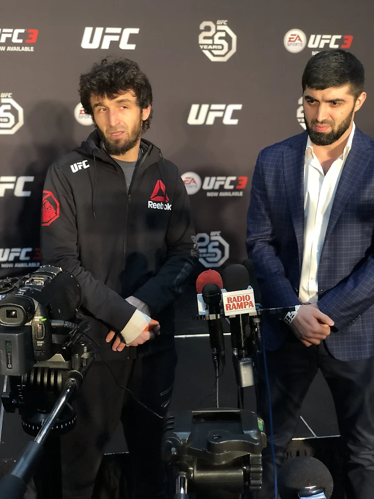 Тренер Магомедшарипова Марк Генри сказал, что боец получил травму во время разогрева перед боем. Однако сам боец сообщил, что сломал руку в первом раунде.