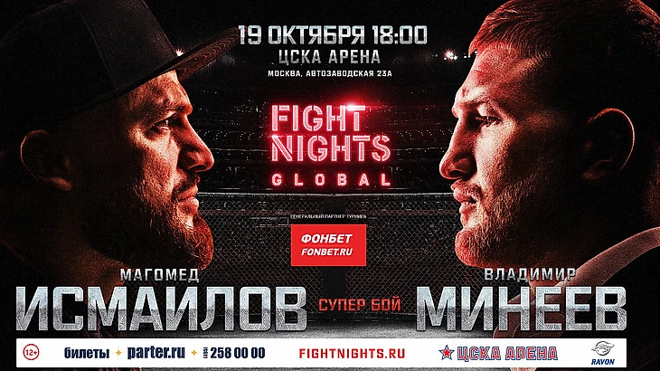 19 октября на «ЦСКА-Арене» в Москве прошел Fight Nights Global 90. В главном бою турнира встретились средневесы Магомед Исмаилов и Владимир Минеев. Поединок бойцов завершился ничьей.