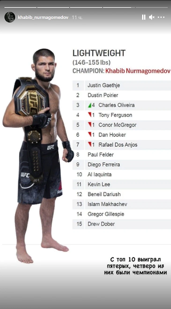 «Из топ-10 выиграл пятерых, четверо из них были чемпионами», – написал Хабиб.