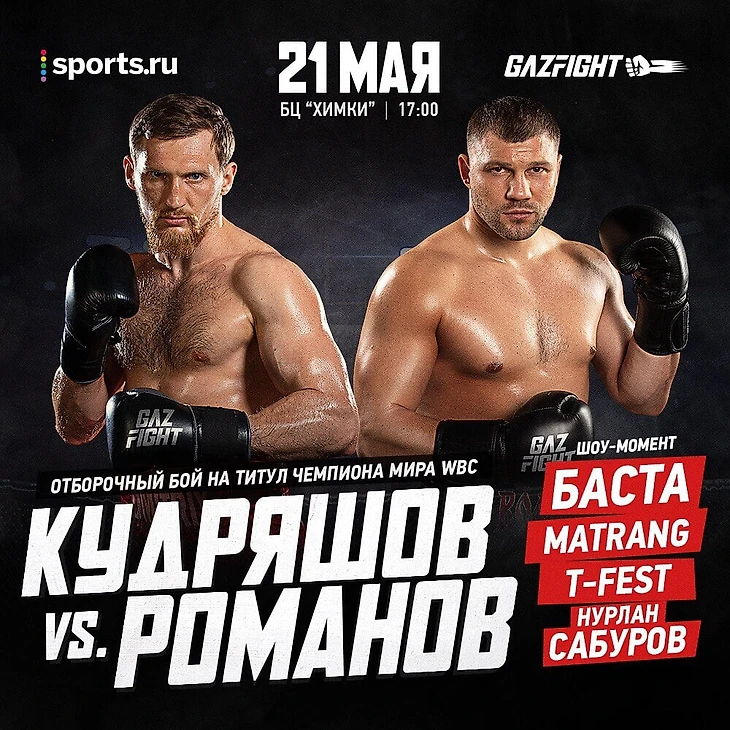 Баста организовывает первый турнир по боксу Gazfight. 21 мая подерутся Кудряшов и Романов