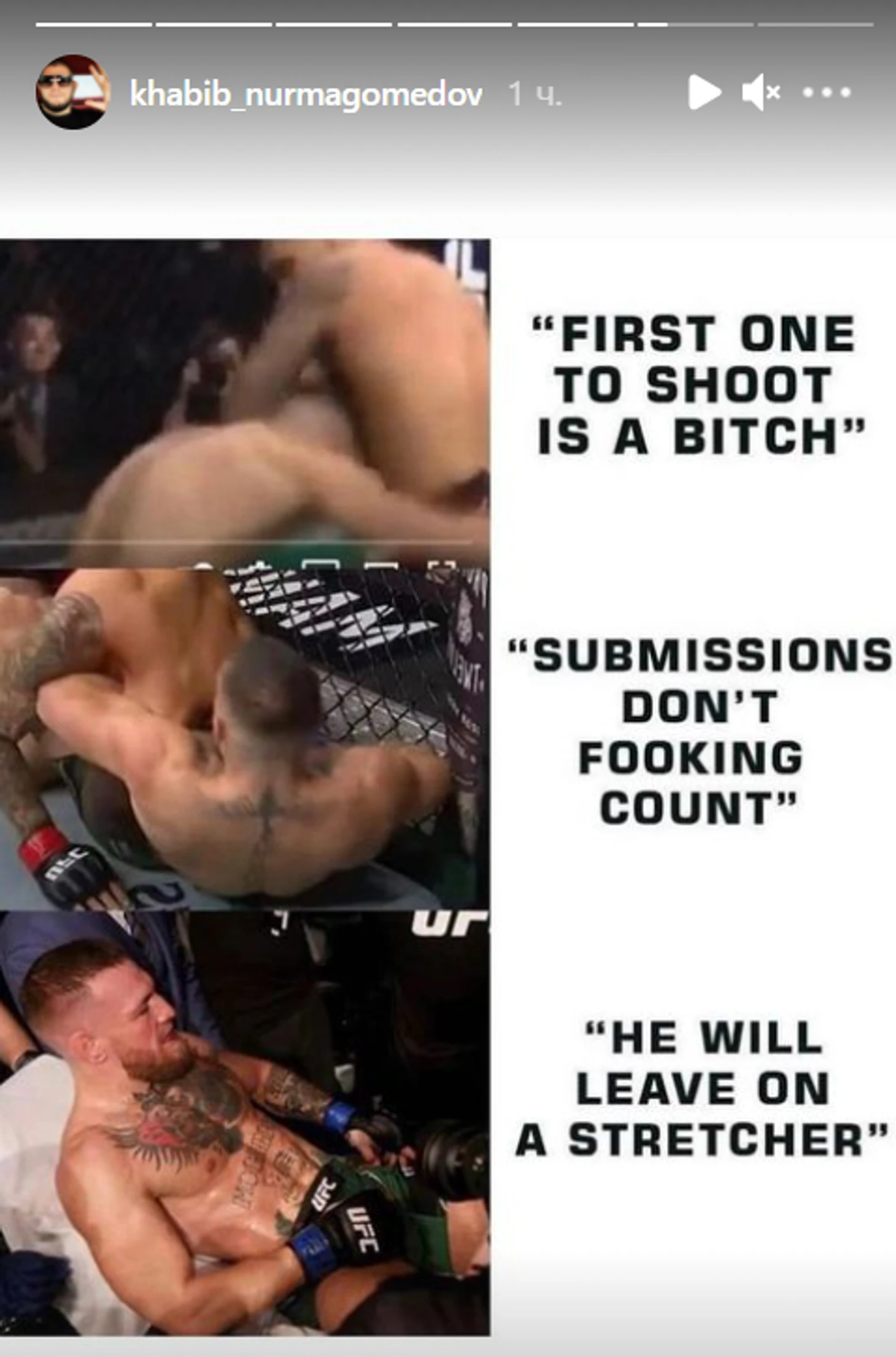 Хабиб опубликовал коллаж с высказываниями Макгрегора до боя с Порье.