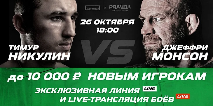 Монсон против Никулина на Pravda Fighting Championship. «Лига ставок» дарит до 10 тысяч рублей на ставку новым игрокам