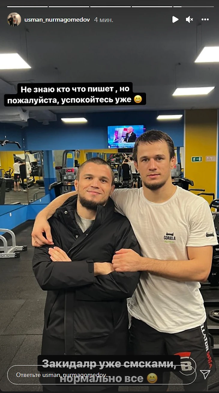 «Кто где, мы в зале. Не знаю, кто, что пишет. Но, пожалуйста, успокойтесь уже. Закидали уже смсками. Нормально все», – написал двоюродный брат Хабиба Нурмагомедова.