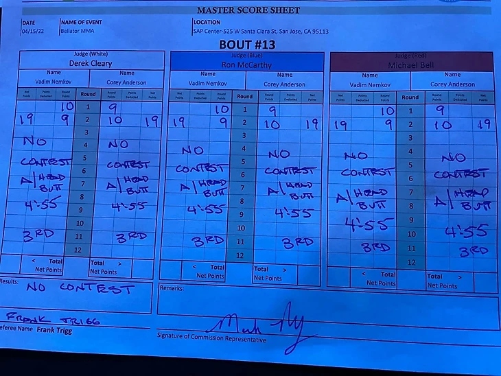 Бой Немкова и Андерсона на Bellator 277 признан несостоявшимся