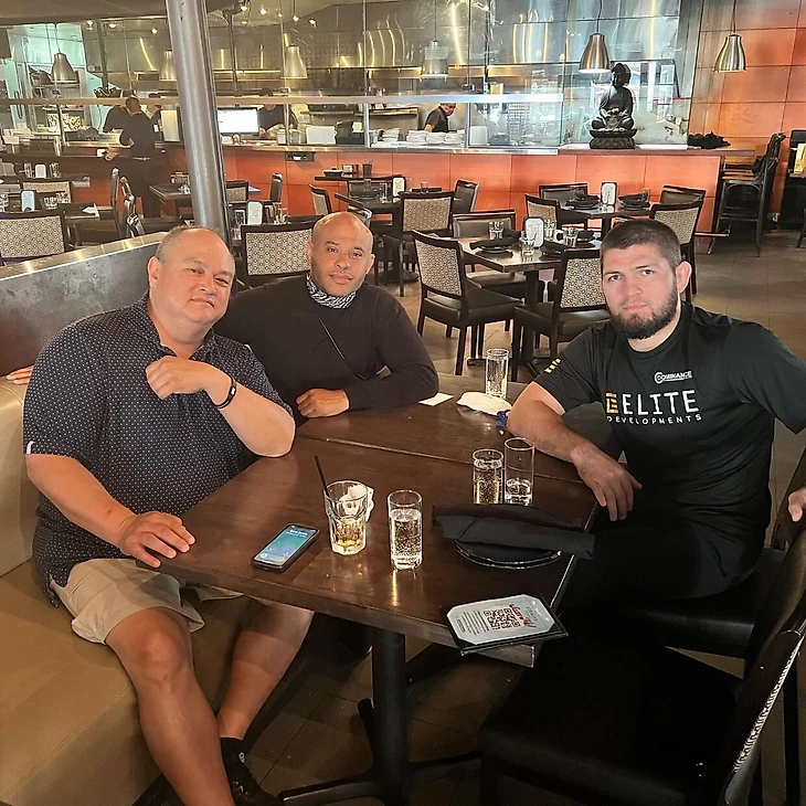 Бывший чемпион UFC в легком весе, а ныне президент Eagle MMA Хабиб Нурмагомедов, поделился фотографией с президентом Bellator Скоттом Кокером и менеджером Али Абдель-Азизом.