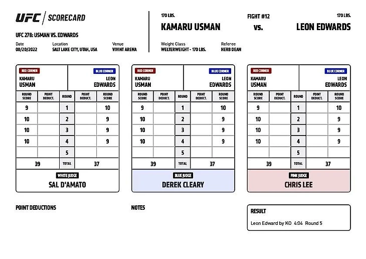 Судейские карточки боя Эдвардса и Усмана: на момент нокаута Камару лидировал