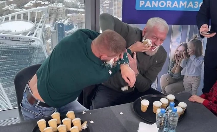 Между Александром Емельяненко и Святославом Коваленко прошла дуэль по поеданию мороженного. Однако все закончилось тем, что Емельяненко ткнул мороженным в лицо Коваленко, и тот ответил.
