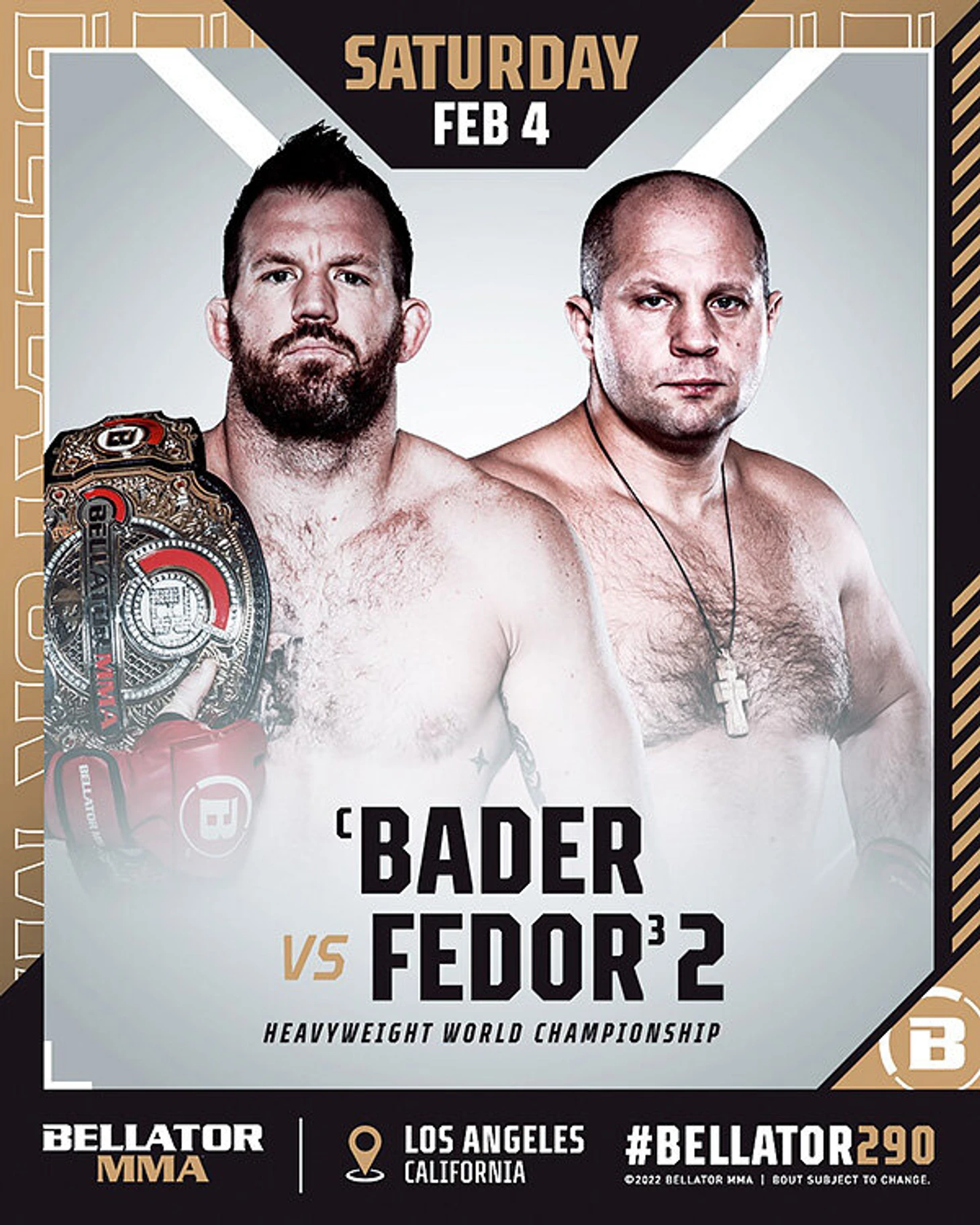 4 февраля в Калифорнии (США) пройдет Bellator 290, где в главном событии вечера состоится долгожданный реванш Федора Емельяненко с Райаном Бейдером.