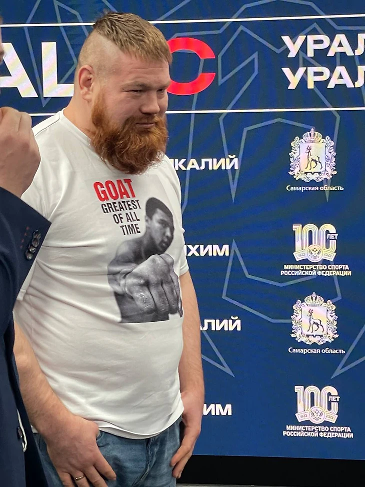 В Самаре состоялась церемония битвы взглядов участников турнира Ural FC 2, который пройдет 25 марта. Российский боец-тяжеловес Вячеслав Дацик вышел на дуэль в майке с изображением боксера Мохаммеда Али.