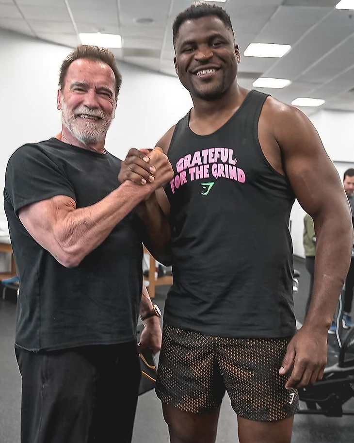 Экс-чемпион UFC в тяжелом весе Фрэнсис Нганну поделился фотографией с Арнольдом Шварценеггером.