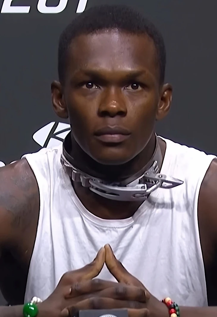 Бывший чемпион UFC в среднем весе Исраэль Адесанья пришел на пресс-конференцию перед турниром UFC 287 с собачьим ошейником на шее.