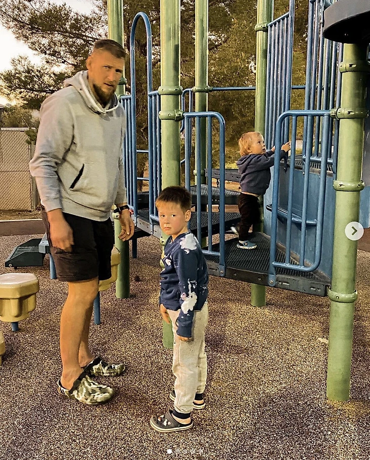 Боец UFC поделился в соцсетях фотографией, где он играет на площадке со своими детьми.