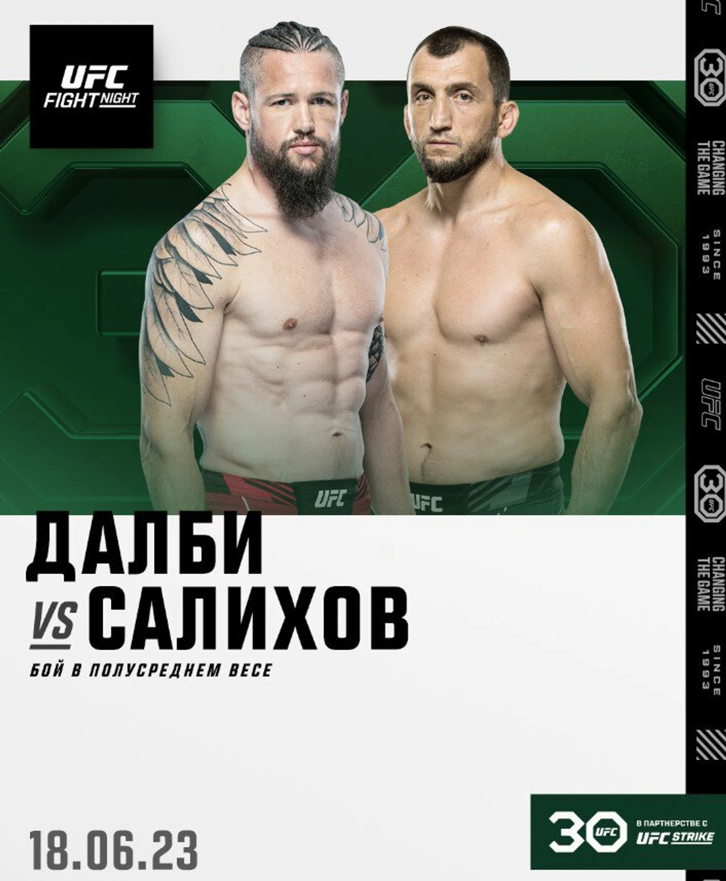 В главном карде турнира пройдет поединок в полусреднем весе между Муслимом Салиховым и Николасом Далби.