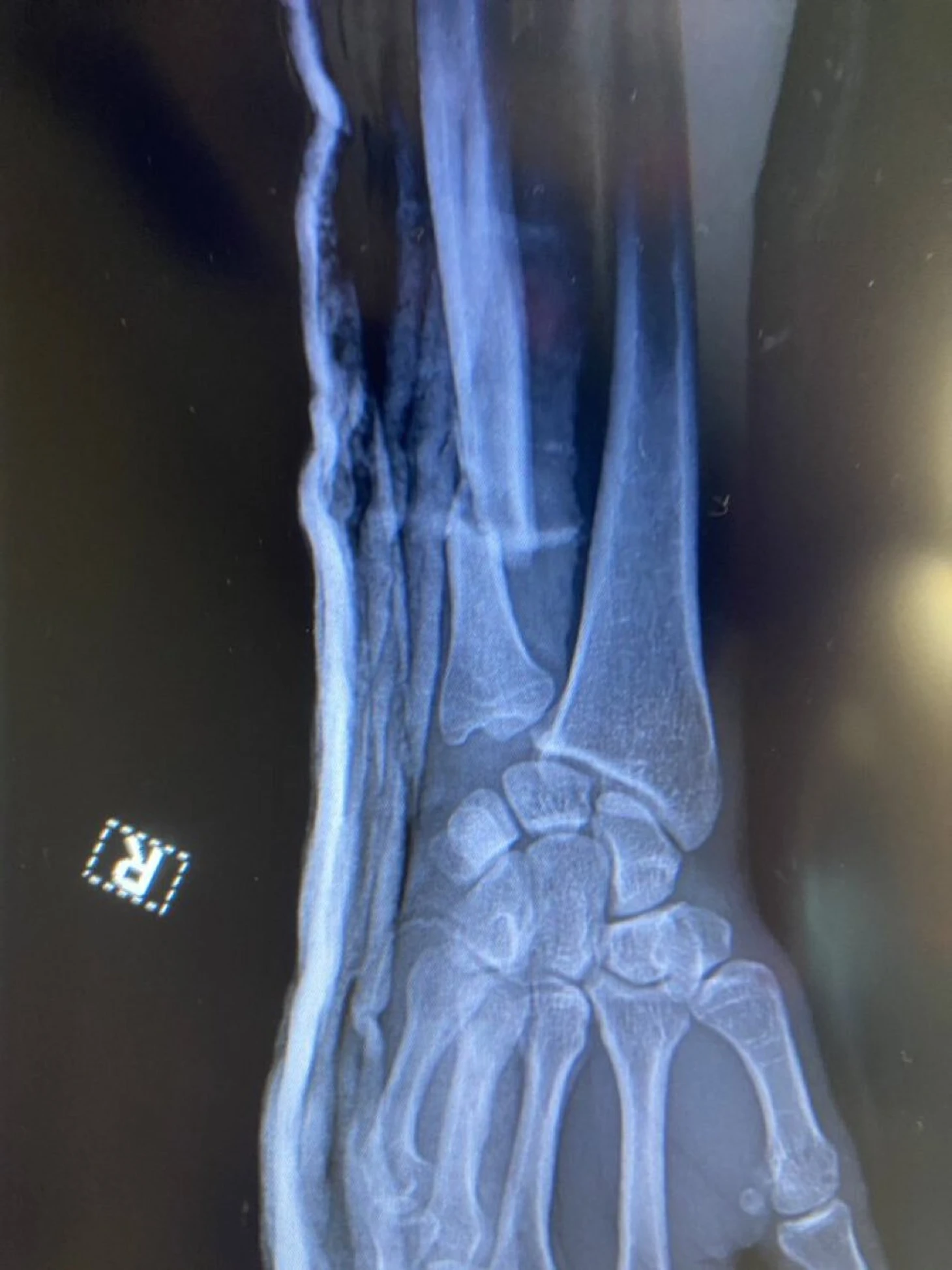 Спортсмен показал рентгеновский снимок руки – перелом.