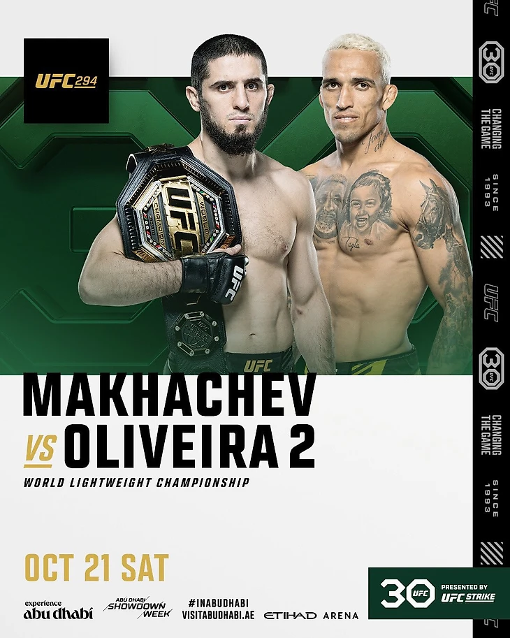 Официально: Ислам Махачев подерется против Чарльза Оливейры на UFC 294 в Абу-Даби 21 октября