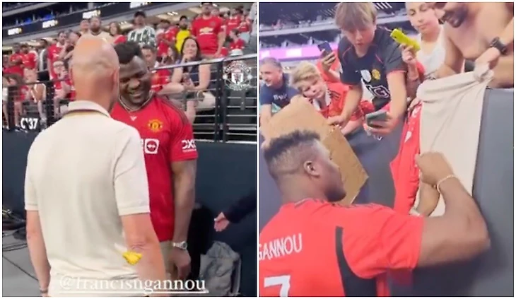 «Любимый боксер-супертяжеловес «Манчестер Юнайтед» в здании. Не могу дождаться начала сегодняшнего матча в Лас-Вегасе», – написал в соцсетях экс-чемпион UFC Фрэнсис Нганну.