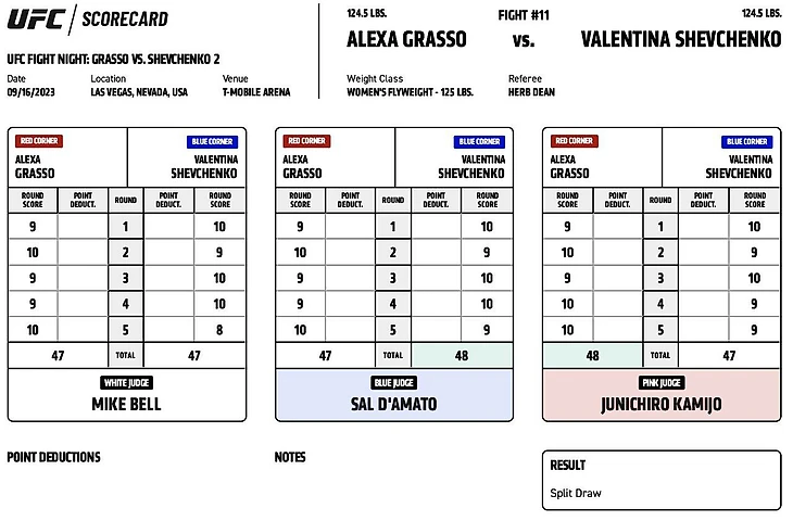 Судейские записки боя Шевченко – Грассо на UFC Noche. Судья Белл отдал Грассо пятый раунд 10-8