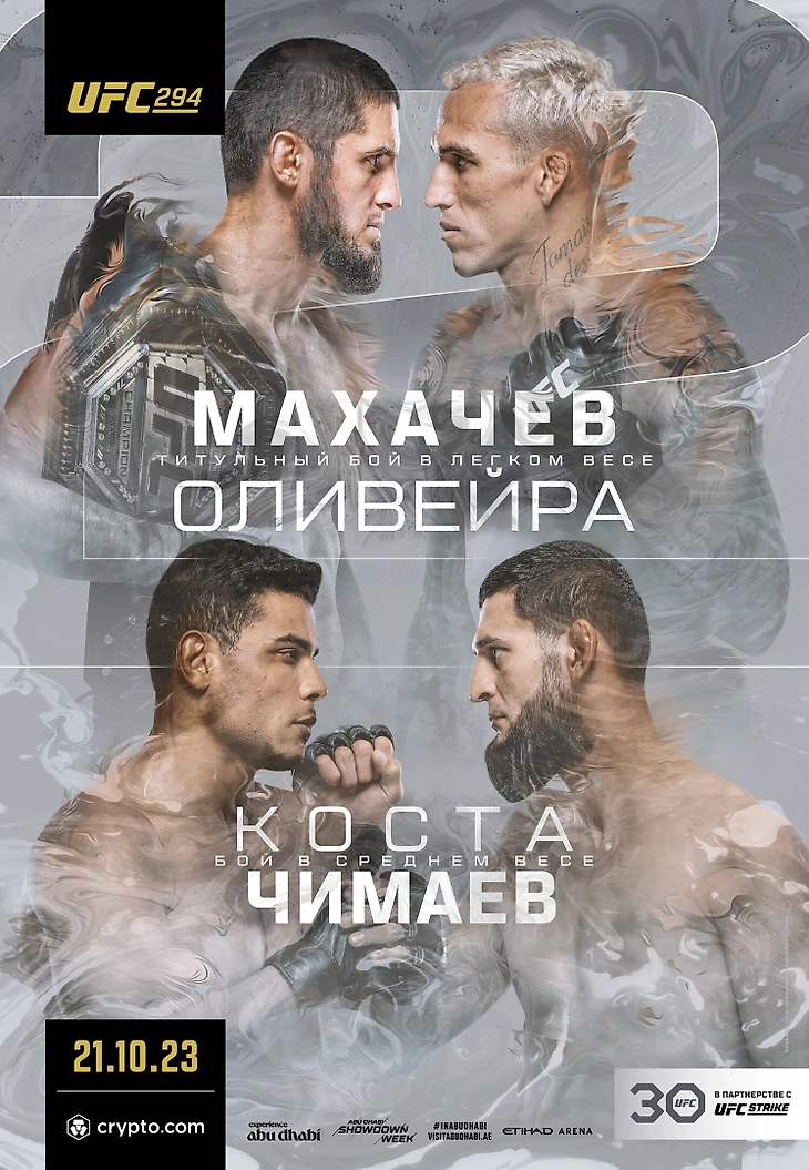 Главным событием станет титульный поединок в легком весе между Исламом Махачевым и Чарльзом Оливейрой.