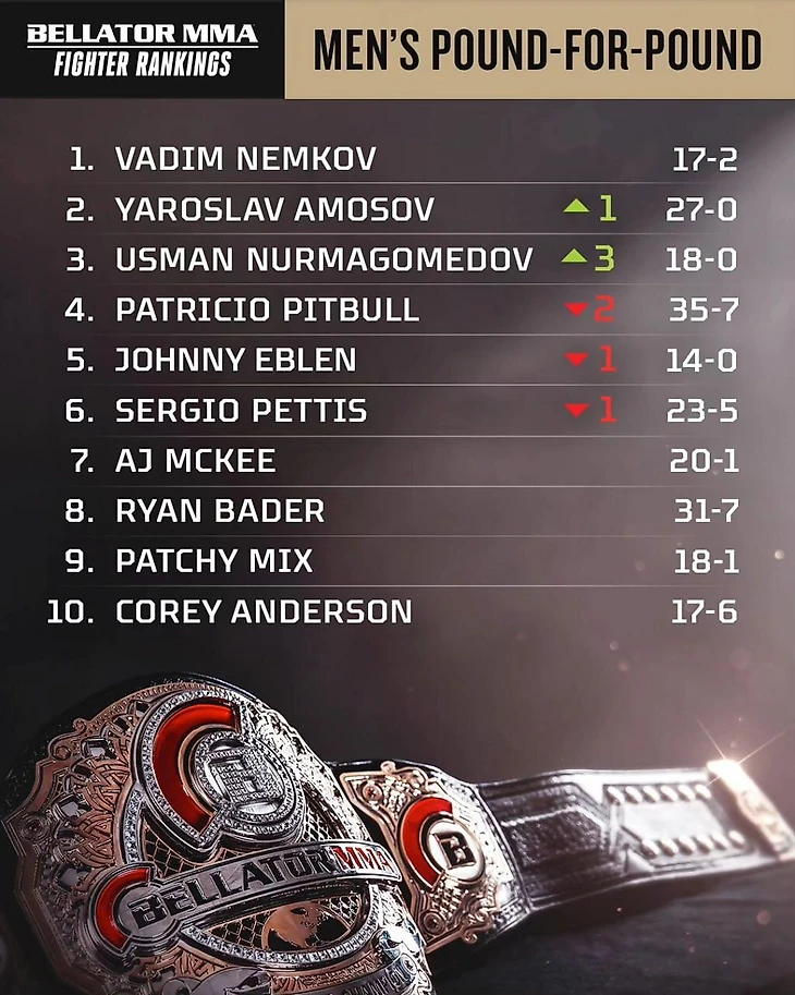 Усман Нурмагомедов поднялся на третье место в рейтинге P4P Bellator. В топ-3 – два бойца из России