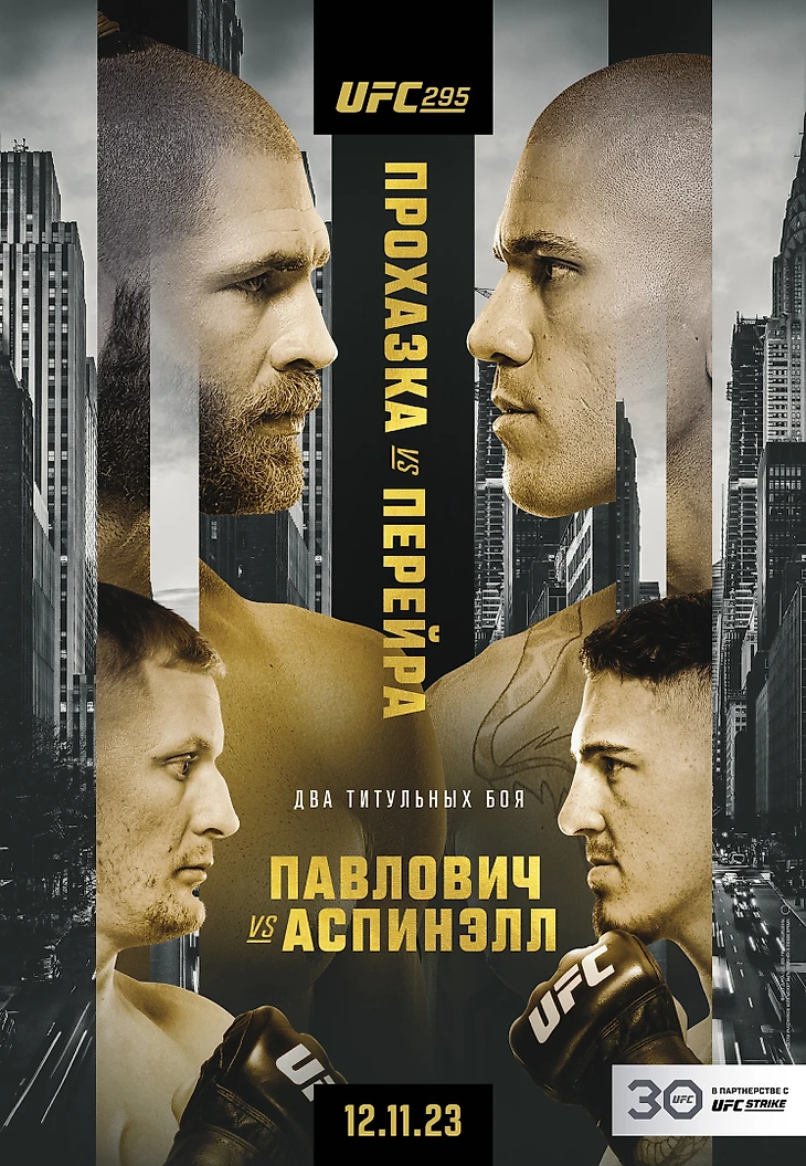Опубликован обновленный постер UFC 295 с афишей боя Павловича и Аспиналла