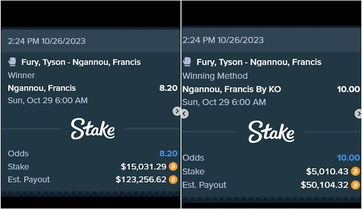1) $15 тысяч на победу Фрэнсиса Нганну. Коэффициент 8.2. Возможный выигрыш: $123 тысячи.